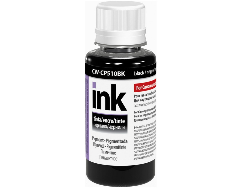| ColorWay Canon PGI-5/520/PG-40/37 BlackPigm. (CW-CP510BK01) - чорнило для системи безперервної подачі чорнила, струменевих принтерів та МФУ. При використанні СНПЧ, а також при перезаправці картріджів вимагається чорнило, яке може бути пігментним або водорозчинним. Перевага пігментного чорнила в тому, що вони більш за стійкі до світла та води, не розпливаються при намоканні. Перевага використання водорозчинного чорнила в істотній економії грошових коштів в порівнянні з пігментними та в зручності використання, відсутності ризику засихання в друкуючій голівці. Серед основних конкурентних переваг чорнил ColorWay: гарна передача кольорів, чіткість зображення, волого- і світлостійкість, ощадлива ціна. |