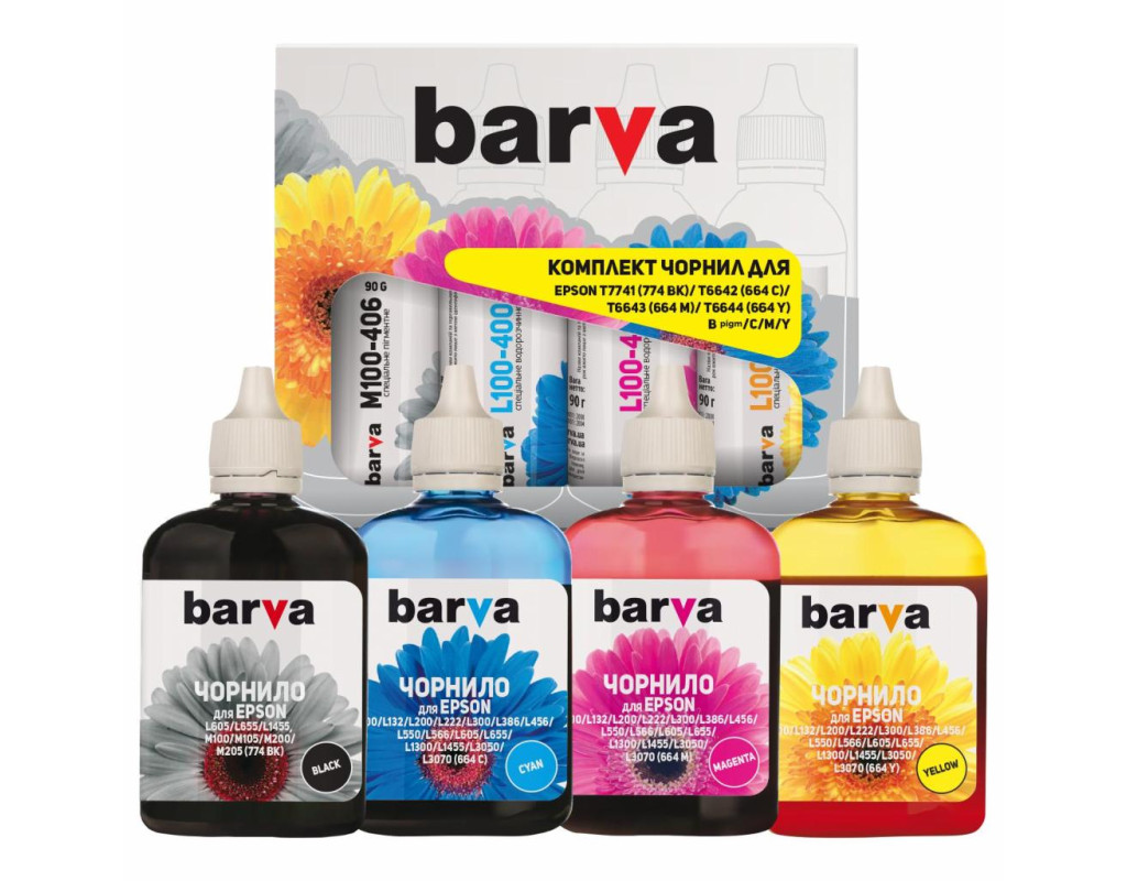 Сумісні чорнила торгової марки Barva використовуються для заправки струменевих картриджів, СНПЧ і ПЗК.