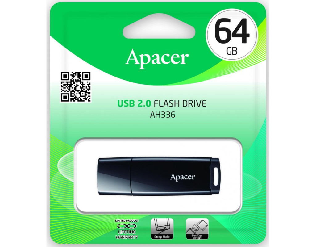 USB флеш накопичувач Apacer 64GB AH336 Black USB 2.0 (AP64GAH336B-1)