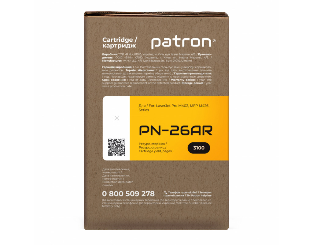 Картридж PATRON HP LJ CF226A Extra (PN-26AR) Тонер-картридж Patron є найвигіднішим рішенням для користувачів, які багато і інтенсивно друкують, і досить часто не тільки заправляють, а й відновлюють картридж. Переваги: Виготовляється з оригінального корпусу після одного циклу його використання і нових комплектуючих Ресурс відповідає оригінальному картриджу Можливість подальшої заправки і відновлення картриджа Кожен картридж тестується, зразок печатки вкладений в упаковку Якість друку і ресурс тестуються за міжнародним стандартом STMC |