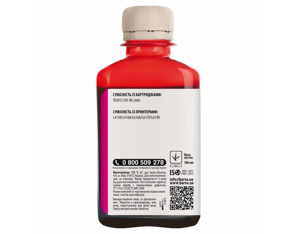 Чорнила використовуються для заправки струменевих картриджів, СНПЧ і ПЗК. Чорнила розробляються і виробляються на території України. Кожна партія чорнил проходить випускний контроль. Завдяки цьому фарба від торгової марки Barva має стабільну якість друку і реалістичну передачу кольору. |