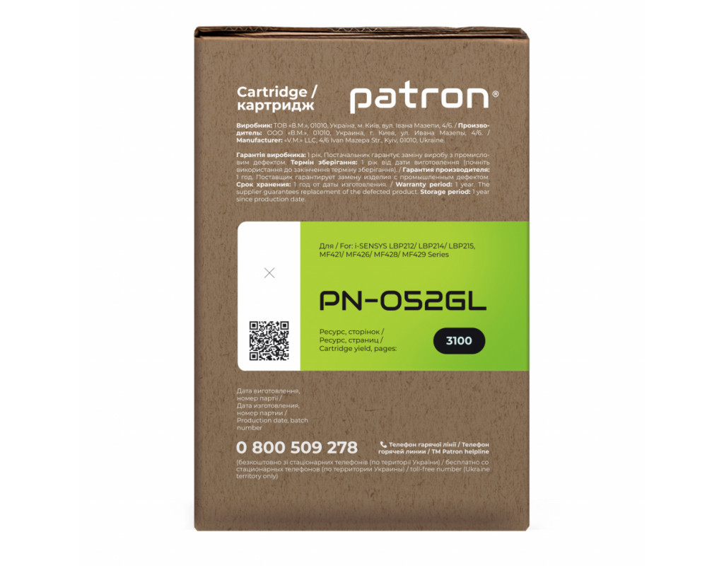 Картридж Patron CANON 052 GREEN Label (PN-052GL)
