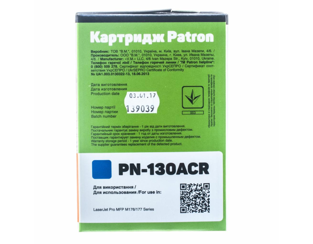 Картридж Patron HP CLJ CF351A для M176/M177 Cyan, Extra (PN-130ACR)
