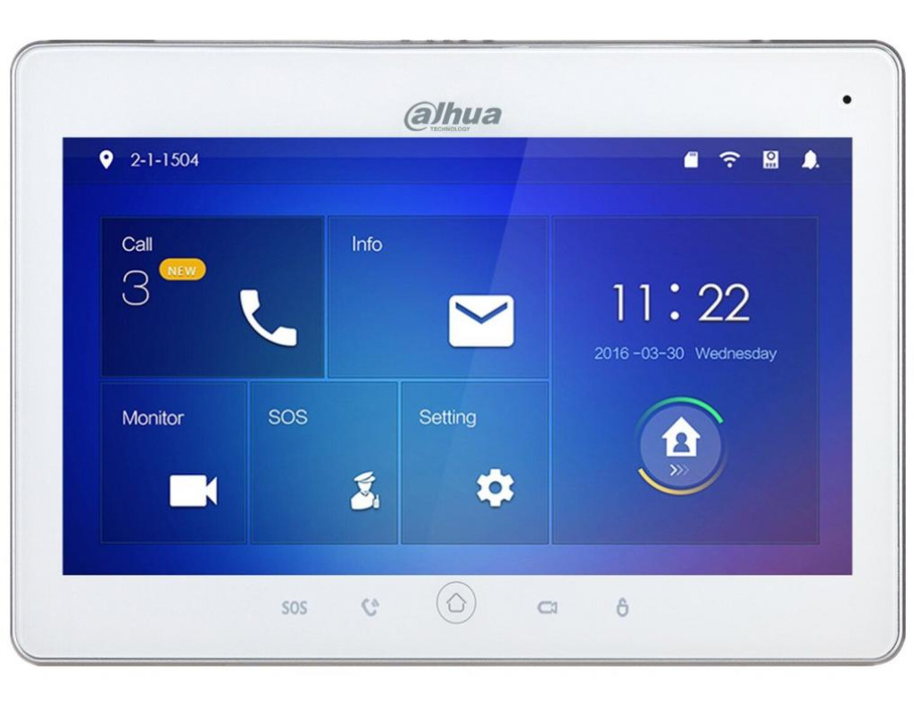 IP - домофони, Система зв'язку - дротова, накладний монтаж, 10″, кольоровий, сенсорні кнопки, сенсорний екран, 1024 × 600, білий