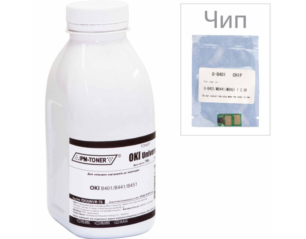Тонер OKI B401/B441/B451, 75г +chip2.5K, Black WWM (TDOUNVR-75-CH)