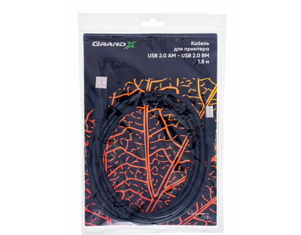 Кабель для принтера USB 2.0 AM/BM 1.8m Grand-X (PR-18)