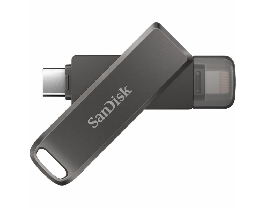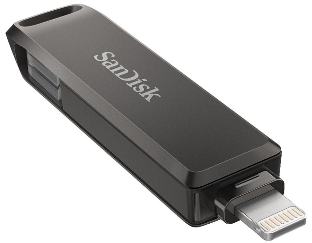 Флеш-накопичувачі SanDisk® iXpand® Flash Drive Luxe обладнань не одним, а двома роз'ємамі, ви можете легко переносіті файли з iPhone, iPad Pro, Mac и USB типу C. |