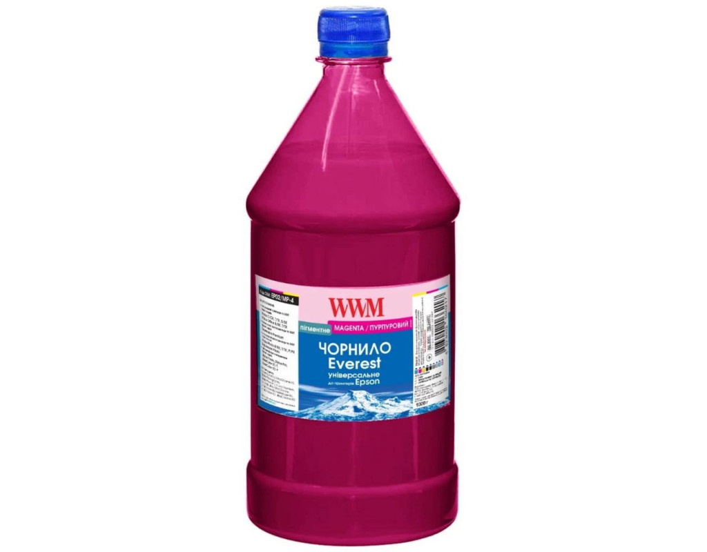 WWM EPSON UNIVERSAL EVEREST pigmented Magenta (EP02 / MP-4) являють собою якісні чорнило, які відрізняються високою світло-і водостійкістю, широкою гамою кольорів і хорошою чіткістю одержуваних відбитків. Зображення надовго збереже яскравість, завдяки впровадженню у виробництво чорнила новітніх наукових розробок. Барвником в пігментних чорнилі є нерозчинний у воді органічне або неорганічне з'єднання. Пігмент - це кольорові частинки, які мають всі характеристики твердого тіла, такі як обсяг, діаметр та ін. В чорнилі застосовуються пігменти в дуже подрібненому вигляді: розмір часток менше 0.1 мкм. Перевага пігментного чорнила в тому, що вони більш стійкі до світла і воді, в порівнянні із чорнилом, і не розпливаються при намоканні. Друк чіткіша, символи не розпливаються навіть на самій поганому папері. Це робить пігментні чорнило незамінними при друку зображень для зовнішнього використання. |