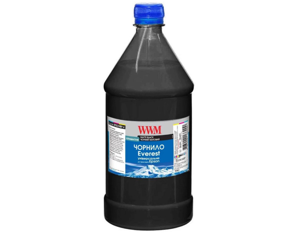 Чорнило WWM EPSON UNIVERSAL EVEREST pigmented Matte Black (EP02 / MBP-2) - це сумісні чорнило, які призначені для заправки картриджів струменевих принтерів, СНПЧ і ПЗК. Всі чорнила розробляються, тестуються та виробляються в Україні. Чорнило розфасовані в спеціальні флакони для зручної заправки. Барвником в пігментних чорнилі є нерозчинний у воді органічне або неорганічне з'єднання. Пігмент - це кольорові частинки, які мають всі характеристики твердого тіла, такі як обсяг, діаметр та ін. В чорнилі застосовуються пігменти в дуже подрібненому вигляді: розмір часток менше 0.1 мкм. Перевага пігментного чорнила в тому, що вони більш стійкі до світла і воді, в порівнянні із чорнилом, і не розпливаються при намоканні. Друк чіткіша, символи не розпливаються навіть на самій поганому папері. Це робить пігментні чорнило незамінними при друку зображень для зовнішнього використання. |