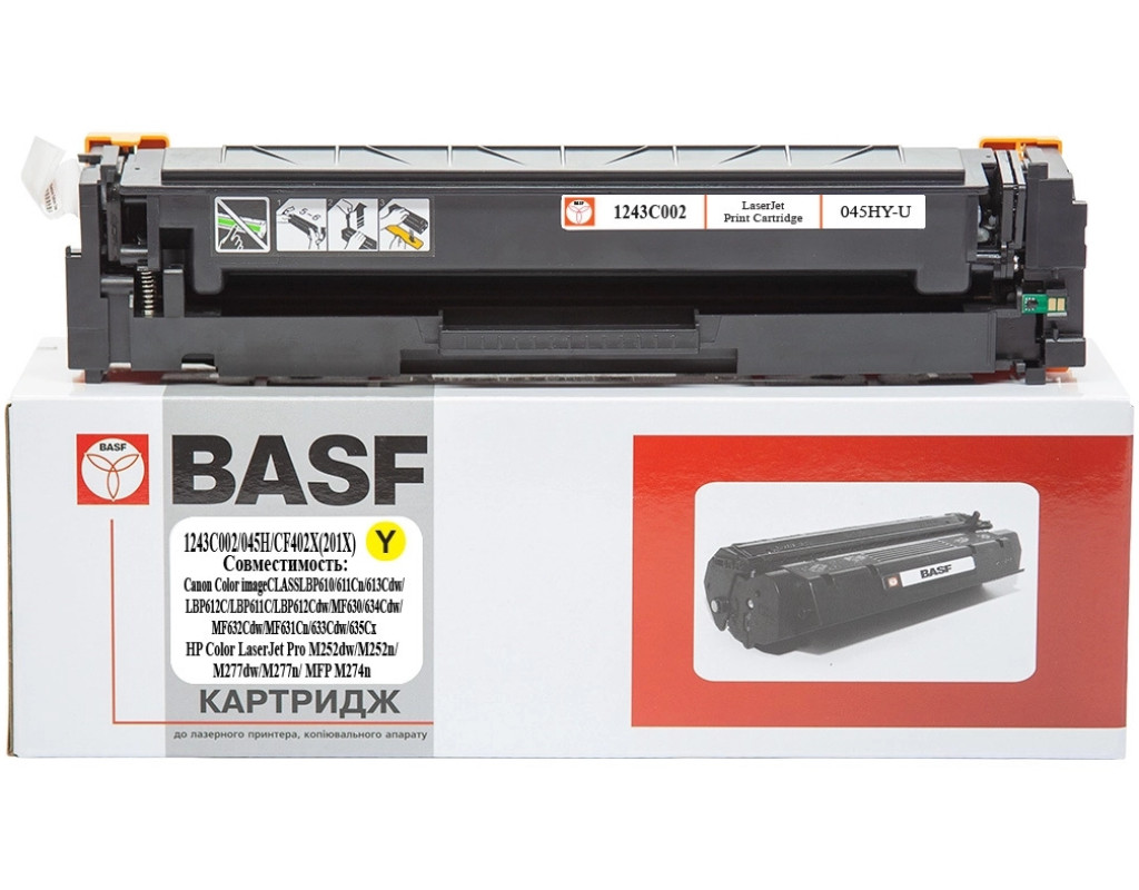 Картридж BASF Canon 045H, 1243C002/CF402X/201X Yellow (KT-045HY-U)