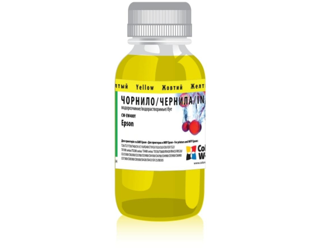| Чорнило ColorWay Epson SC 67/87/79/91/T26 200мл Yellow (CW-EW400Y02) - чорнило для системи безперервної подачі чорнила, струменевих принтерів та БФП. Серед основних конкурентних переваг чорнил ColorWay: гарна передача кольорів, чіткість зображення, волого - і світлостійкість, бюджетна ціна. При використанні СНПЧ (системи неперервної подачі чорнила), а також при перезаправке картриджів потрібні чорнило, які можуть бути пігментними або водорозчинними. Система безперервної подачі чорнила вирішує проблему економного друку і робить купівлю струменевого принтера економічно виправданою. Все, що Вам необхідно - це періодично поповнювати чорнило в донорах, вартість яких значно менша, ніж вартість повного набору картриджів. Пігментні чорнило ColorWay - барвником у пігментних чорнилах є нерозчинна у воді органічне або неорганічне з'єднання. Пігмент - це кольорові частинки, які мають всі характеристики твердого тіла, такі як об'єм, діаметр та ін Перевага пігментних чорнила в тому, що вони більш стійкі до світла і воді, не розпливаються при намоканні. Водорозчинне чорнило ColorWay - барвники утворюють в чорнилі ідеальний розчин, тобто знаходяться у вигляді окремих іонів, оточених розчинниками. В чорнило додаються речовини, які притягують до себе водні пари з повітря, для запобігання пересихання. Перевага використання водорозчинних чорнила в істотної економії коштів порівняно з пігментними і в зручності використання, відсутності ризику засихання в друкуючій голівці. |