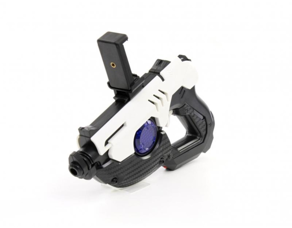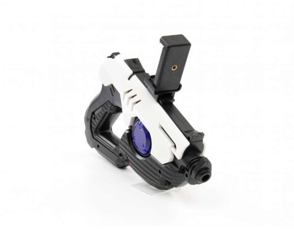 Гаджет по виду нагадує справжній бластер, що ще більше підсилює враження в грі і вам дійсно доведеться натискати на спусковий гачок і цілиться в супротивника повертаючись урізнобіч так, як бластер сприймає зміну положення і кут огляду змінюється з поворотом тіла гравця, а грати можна як в приміщенні так і на вулиці. Синхронізація зі смартфоном здійснюється за допомогою інтерфейсу Bluetooth. Додаток для мобільного пристрою можна завантажити на Playmarket або Appstore залежно від моделі смартфона. Для гри потрібно завантажити по QR коду, що йде в комплекті з гаджетом додаток, а так само ігри і встановити їх на мобільний пристрій, а сам смартфон закріпити на гаджеті і потім синхронізувати пристрої за допомогою Bluetooth. Бластер виконаний з пластику високої якості і має ергономічну форму щоб виключити втому під час гри і підійде як дорослим так і дітям. Живлення гаджета здійснюється від двох батарей ААА. AR-Glock gun ProLogix NB-007AR подарує масу яскравих вражень від захоплюючих шутерів і цей пристрій доповненої реальності робить відеогру по справжньому рухливою. |