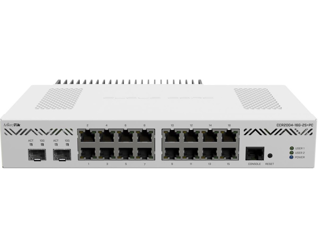 | До 300% швидше, ніж попередні маршрутизатори CCR1009 - у блаженній тиші! Розкіш, яку ви заслуговуєте за ціну, яку можете собі дозволити. 16 портів Gigabit Ethernet, 2 порти SFP+ 10G.