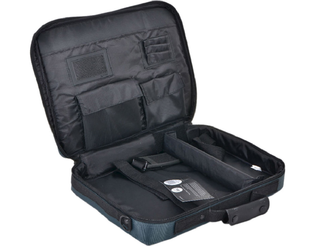 Сумка для ноутбука 15,4-16" у класичному дизайні. Робоче відділення для флешок, ручок, дисків, журналів і документації. Наскрізний задній кишеню для легкої фіксації сумки на телескопічній ручці багажної візки, також можна використовувати як відділення для документації. Передня кишеня для зарядки і мишки. Наявність м'якого регульованого знімного плечового ременя. Накладної задня кишеня з фіксацією на "липучці". Матеріал: міцний, водооталкивающий нейлон 420D. |