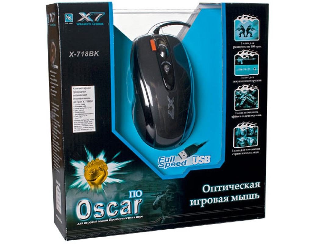 | Оптична миша A4Tech Х-718BK - відмінний вибір для геймерів, які грають на великих моніторах. Її роздільна здатність збільшується до 3200 dpi, що оптимально підійде для «широкоформатної» гри. У миші використовується потужний і чутливий сенсор Agilent. Вона виключно плавно рухається при будь-яких поворотах, реагуючи на найменші рухи швидко і чітко. Завдяки зручній і ергономічній формі, миша легко і надійно лягає в руку. В процесі гри не потрібно рухати маніпулятор всією кистю, з Х7 працюють тільки пальці. З боків зроблені прогумовані вставки, що виключає вислизання миші в самій напруженій ігровій ситуації. Симетричний дизайн розрахований як на правшів, так і на лівшів. Шість кнопок миші програмуються. Поруч з колесом прокрутки розташовується унікальна кнопка «Потрійний клік», що дозволяє зробити відразу три постріли одним натисненням. Кнопка зміни роздільної здатності дозволяє змінювати швидкість курсора миші без установки додаткових драйверів. При зміні режиму колесо прокрутки підсвічується різними кольорами. Максимальна роздільна здатність - 3200 dpi. При поверненні до повсякденної роботи за комп"ютером можна знизити його до 400 dpi. Незалежно від ігрової активності і частоти використання миші, кнопки моделі прослужать вам дуже довго. Виробник, японська компанія OMRON, гарантує до 8 000 000 безперебійних «кліків». Нові ігрові миші A4Tech мають вбудовану пам"ять 16 Кб. Це означає, що тепер у вас є унікальна можливість запрограмувати мишку виконувати будь-які ігрові дії одним кліком! Створюйте свої скрипти і інтегруйте їх у вбудовану пам"ять вашої миші. Грайте на будь-яких комп"ютерах, зберігши ваші унікальні установки в пам"яті миші. Для цього просто скористайтеся зручним і наочним редактором скриптів Oscar, який ви знайдете на доданому диску. |