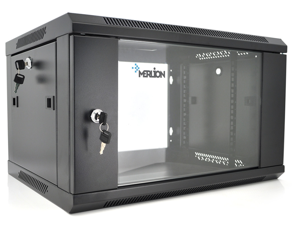 | Шафа Merlion 6U. Привабливий зовнішній вигляд, двері із загартованого скла, непомітний чорний колір. У верхній кришці шафи передбачено місце для встановлення вентилятора охолодження. Зовнішня висота складає 367 мм, зовнішня глибина – 600 мм. Бічні двері – знімні на замках. Передні двері із загартованого скла з наявністю замку для запобігання небажаному доступу до обладнання. Шафа поставляється у розібраному вигляді, легко збирається протягом тридцяти хвилин однією людиною. Характеристики: • Монтаж: настінний / підлоговий • Висота, U: 6 • Ширина, мм: 600 • Глибина, мм: 600 • Колір чорний |