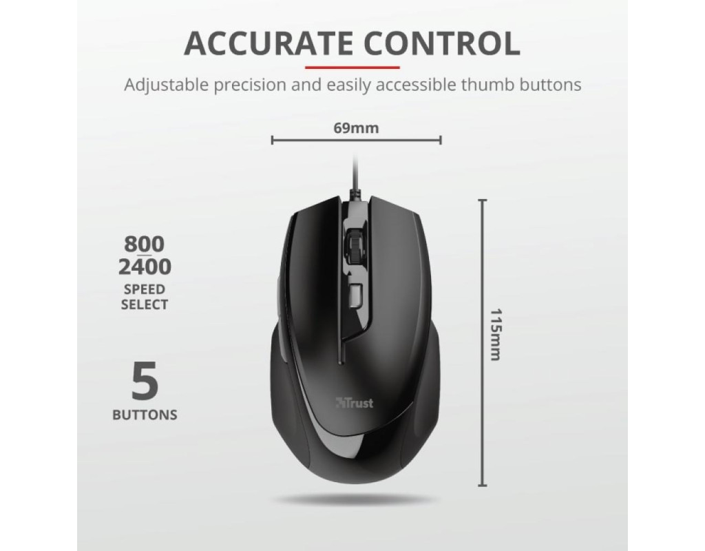| Мишка Trust Voca USB Black (23650) - це ідеальне рішення для тих, хто цінує якість, зручність та ефективність у роботі з комп'ютером. Вона належить до категорії класичних моделей, що робить її універсальним вибором для будь-якого користувача. Елегантний чорний колір підкреслює строгий стиль та додасть впевненості на вашому робочому місці. Завдяки ергономічній формі, мишка забезпечує максимально комфортне утримання, навіть після тривалого використання. Вага усього 80 г у поєднанні з розмірами 115 x 69 x 37 мм роблять її зручною та легкою в управлінні. Підключення до комп'ютера відбувається через USB-інтерфейс, що гарантує надійність та швидкість передачі даних. З мишкою Trust Voca ви можете забути про затримки чи розриви з'єднання, адже цей пристрій використовує дротовий тип підключення. Довжина кабелю складає 1.6 м, що дозволяє розташувати комп’ютер на значній відстані від робочого місця без втрати вільності рухів. Особливістю Trust Voca є оптичний датчик, що забезпечує точність та плавність рухів курсора. Ви можете обрати оптимальну для себе роздільну здатність, налаштувавши швидкість між 800, 1200, 1600 та 2400 dpi залежно від ваших потреб - чи то робота з текстовими документами, чи професійне редагування зображень. Важливою перевагою є наявність 6 функціональних кнопок, включаючи дві для великого пальця, які призначені для швидкого перемикання між веб-сторінками (переміщення назад/вперед у браузері). Це значно полегшує перегляд та вже за декілька кліків ви зможете виконати будь-які дії. Trust Voca - це не лише надійність та стиль, але й легкість у налаштуванні. Для початку використання достатньо просто підключити мишку, і вона готова до роботи. Вам більше не потрібно встановлювати жодних додаткових драйверів. Ця мишка - чудовий вибір для тих, хто прагне отримати максимум зручності та ефективності під час роботи за комп’ютером. З Trust Voca кожен ваш рух буде точним, а робота - приємною та комфортною. |