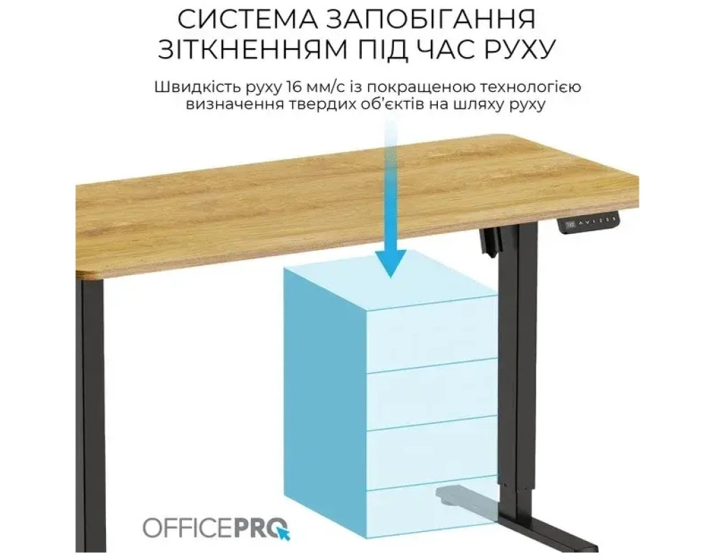 Потужні підйомні колони забезпечують тихий, плавний рух. Система запобігання зіткненням виявляє об’єкти на шляху руху, щоб запобігти зіткненням. Проста у користуванні панель керування дозволяє легко регулювати висоту, а програмовані налаштування пам’яті зберігають улюблені налаштування для додаткової зручності.