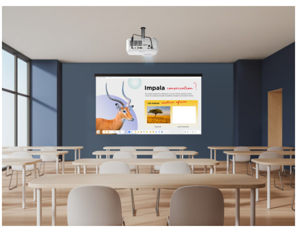 Проектор оснащений 1.3-кратним оптичним зумом, горизонтальною та вертикальною корекцією трапецеїдальних спотворень, а також функцією коригування чотирьох кутів, що забезпечує ідеально вирівняне зображення. Підтримка 360-градусної проєкції та портретного режиму розширює можливості для креативних застосувань, таких як проєкційне мапування та рекламні інсталяції. Режим Golf Mode підсилює кольори, зокрема зелені та сині, для реалістичного відтворення гольф-симуляторів. Технологія DLP забезпечує стабільну якість кольорів без ефекту пожовтіння, а герметична конструкція двигуна запобігає потраплянню пилу, зменшуючи потребу в обслуговуванні.
