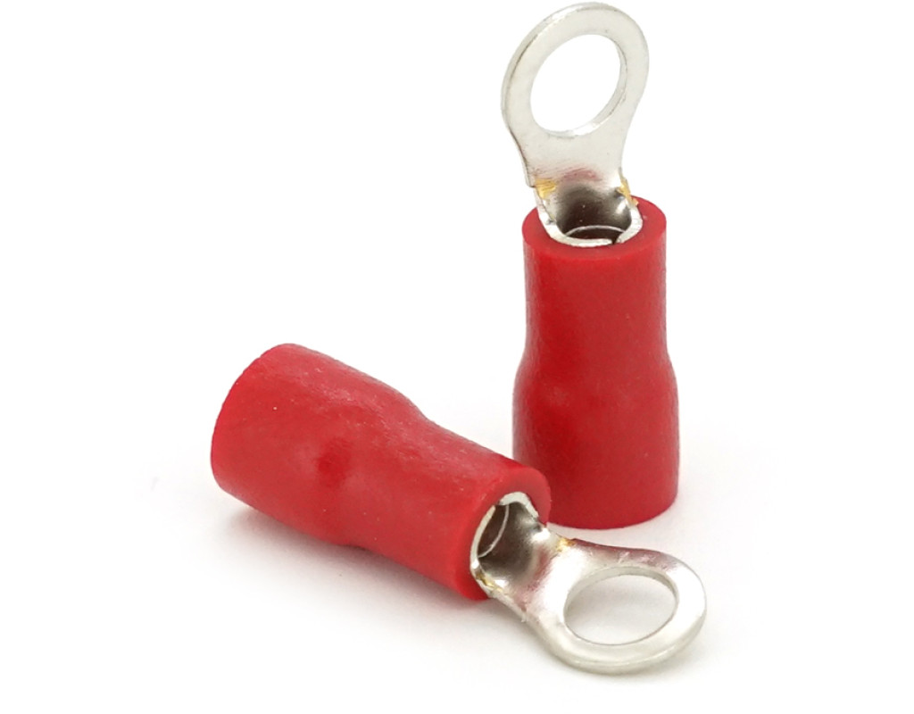 | Клема тип 'О' RV1.25-3.7, 0.5 мм - призначена для монтажу мідних і алюмінієвих проводів і кабелів перерізом 0.5-1.5 мм. Дана Клема забезпечить якісне і надійне з`єднання провідників. Характеристики: • під обтискача • ізольована • матеріал - латунь • максимальний струм - 19 А • під перетин дроту - 0,5-1,5 мм • кількість в упаковці -100 шт |