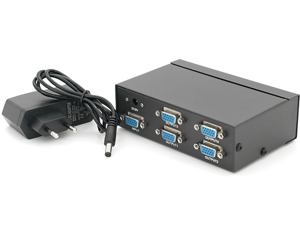 | Input Con: 1Rd VGA 15HDF Con Output Con: 4Rds VGA15HDF Con RGB: Bandwidth 250MHz Input Level: 0.5-1Vp-p Input Resistance: 75O HV Channel: Input Level 0.7-5Vp-p Transmission Distance: 30m Resolution: 1920*1440 Power: DC 9V 50 / 60Hz 5W Enclosure: Plastik |