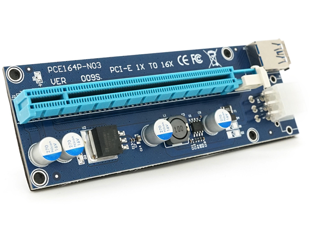 Плата PCE164P-N09 (V009S-Plus) Riser PCI-EX, x1=>x16, USB 3.0, DC12V(PCI-E / 6pin), конденсатори 270, VER009S,Пакет