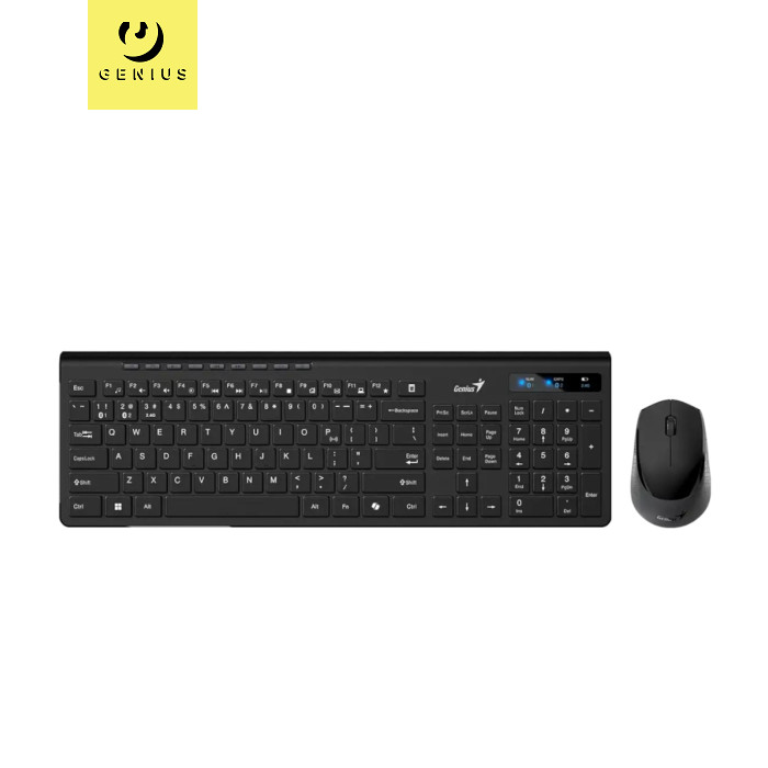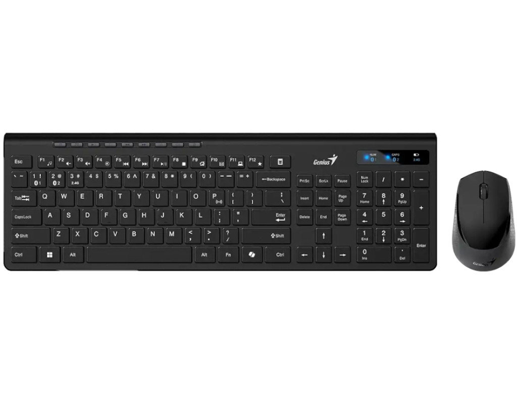 | GENIUS SlimStar 8230 (31340015424) Бездротовий комплект клавіатури та миші GENIUS SlimStar 8230 поєднує сучасний дизайн і зручність у використанні. Завдяки підтримці подвійного режиму підключення (Bluetooth 5.3 та 2.4 ГГц) ви можете легко перемикатися між комп’ютером, смартфоном, планшетом чи смарт-телевізором. Клавіатура оснащена 12 мультимедійними та 9 швидкими гарячими клавішами, що забезпечують миттєвий доступ до улюблених функцій — від відтворення музики до запуску пошти. Додатково передбачена клавіша AI Copilot для активації віртуального асистента у Windows 11.