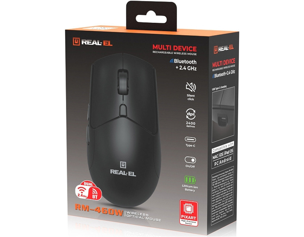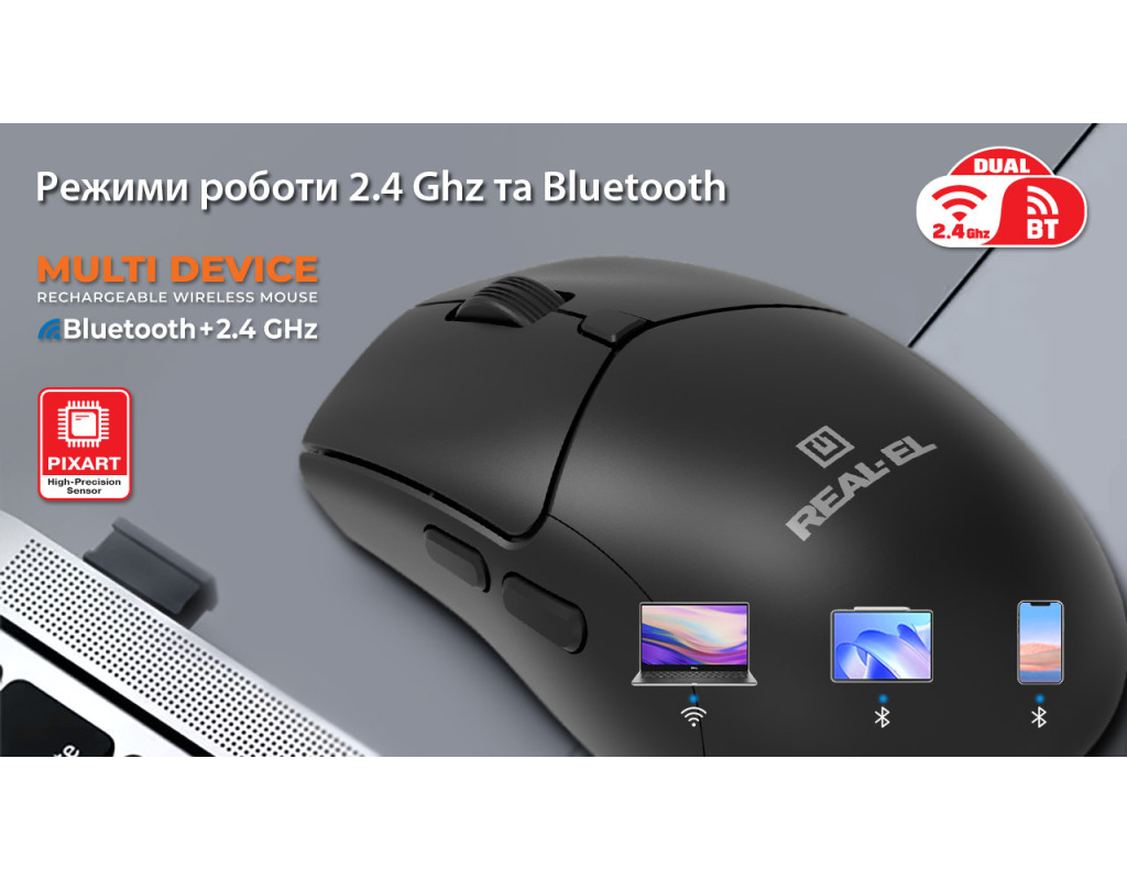 | Мишка REAL-EL RM-460W Wireless/Bluetooth Black (EL123200048) — це втілення передових технологій та комфортного використання, створена з думкою про сучасних користувачів. Вона стає надійним партнером для вашого ноутбука, забезпечуючи безшумність та ефективність. Безшумні клавіші — це ключова особливість, яка робить цю мишку ідеальним вибором для тихого середовища, будь то офіс, бібліотека або домашнє оточення. Завдяки цій функції, жоден зайвий звук не зможе відволікати вас від роботи чи навчання. REAL-EL RM-460W пропонує два варіанти бездротового підключення: Bluetooth і USB адаптер 2.4 ГГц, що забезпечує максимальну гнучкість. Ви зможете легко підключити мишку до будь-якого пристрою, забувши про обмеження. Більше ніяких проводів — ваше робоче місце завжди буде охайним та організованим. Завдяки оптичному сенсору з максимальною роздільною здатністю в 2400 dpi, ця мишка гарантує високу точність і швидкість роботи. Шестикнопкова конструкція, що включає спеціалізовані кнопки, дозволяє виконувати команди швидко та без зусиль, підвищуючи ефективність вашого робочого процесу. Функціональність доповнює ергономічна конструкція, розроблена з урахуванням деталей анатомії руки, дозволяючи комфортно користуватися мишкою протягом тривалого часу. М'яке прогумоване колесо прокручування проходить безшумно, поліпшуючи тактильні відчуття під час навігації та забезпечуючи зручність під час роботи з великими текстами чи веб-сторінками. Не менш важливою є екологічність цього пристрою. Живлення від акумулятора робить мишку зручнішою та економнішою у використанні, дозволяючи не турбуватися про часту заміну батарейок. Це не лише знижує ваші витрати, але й робить вашу діяльність більш екологічно дружньою. Компактні розміри — 113 х 63 х 38 мм і вага в 68 грамів, роблять мишу максимально портативною. Ви зможете легко носити її з собою в сумці, не додаючи зайвого навантаження на багаж. Стильний чорний колір додає елегантності і добре поєднується з будь-яким ноутбуком чи робочою станцією. Обираючи мишку REAL-EL RM-460W Wireless/Bluetooth Black, ви отримуєте функціональний, стильний та високоякісний пристрій. Вона задовольнить всі ваші вимоги, надаючи максимальний комфорт під час роботи. Це оптимальний вибір для тих, хто цінує якість та зручність у кожній деталі свого робочого процесу. |