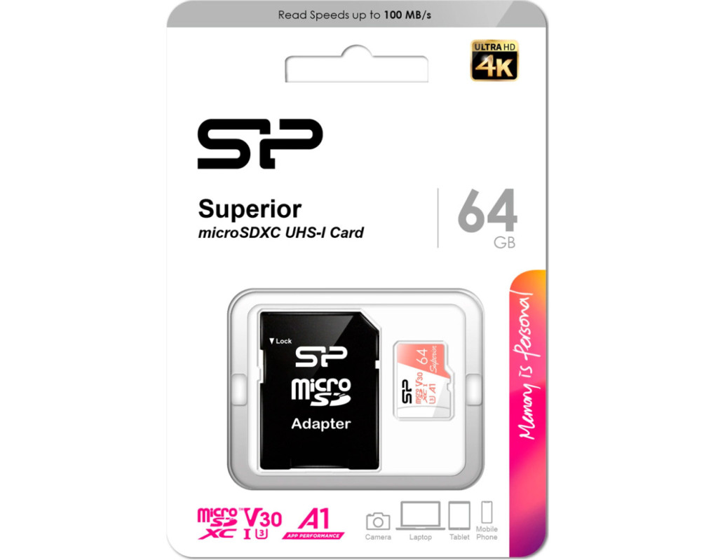 | Карта пам’яті Silicon Power 64GB microSDXC class 10 UHS-I U3 V30 A1 Superior – це вибір для тих, хто цінує найвищу якість та надійність, пропонуючи цілий спектр переваг для ваших цифрових пристроїв. Об’єм 64 ГБ дозволяє зберігати безліч фото, відео та музики, задовольняючи всі ваші потреби у великих даних. Завдяки класу швидкості UHS-I (U3) та відео класу V30, ця картка забезпечує бездоганну якість зйомки у форматі 4K Ultra HD. Швидкість читання до 100 МБ/с та запису до 80 МБ/с гарантують швидкий обмін даними, що полегшує вашу щоденну роботу з великими файлами. Рейтинг A1 забезпечує високу продуктивність додатків, з мінімальною швидкістю випадкового читання 1500 IOPS і запису 500 IOPS. Це робить картку ідеальною для використання з Android-пристроями, дозволяючи швидкий запуск програм і розширення пам’яті смартфону або планшета. Карта Silicon Power може працювати в екстремальних умовах, витримуючи вплив води, ударів, перепадів температур та рентгенівського випромінювання. Вона стане вашим надійним партнером для зйомки в будь-яких умовах – від засніжених вершин до спекотних пустель, завжди залишаючись стійкою і надійною. Оберіть цю карту пам’яті для нових можливостей і бездоганного збереження ваших даних. |