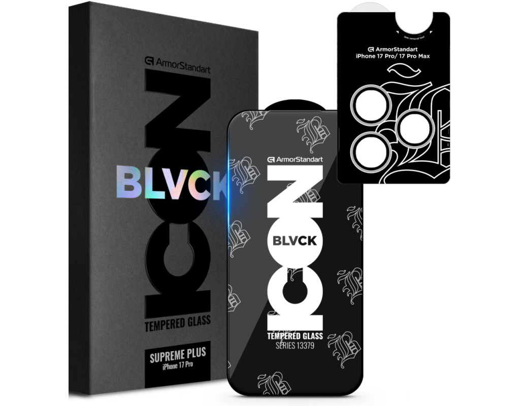 Скло захисне Armorstandart Supreme Plus Black Icon Apple iPhone 17 Pro (ARM86403)