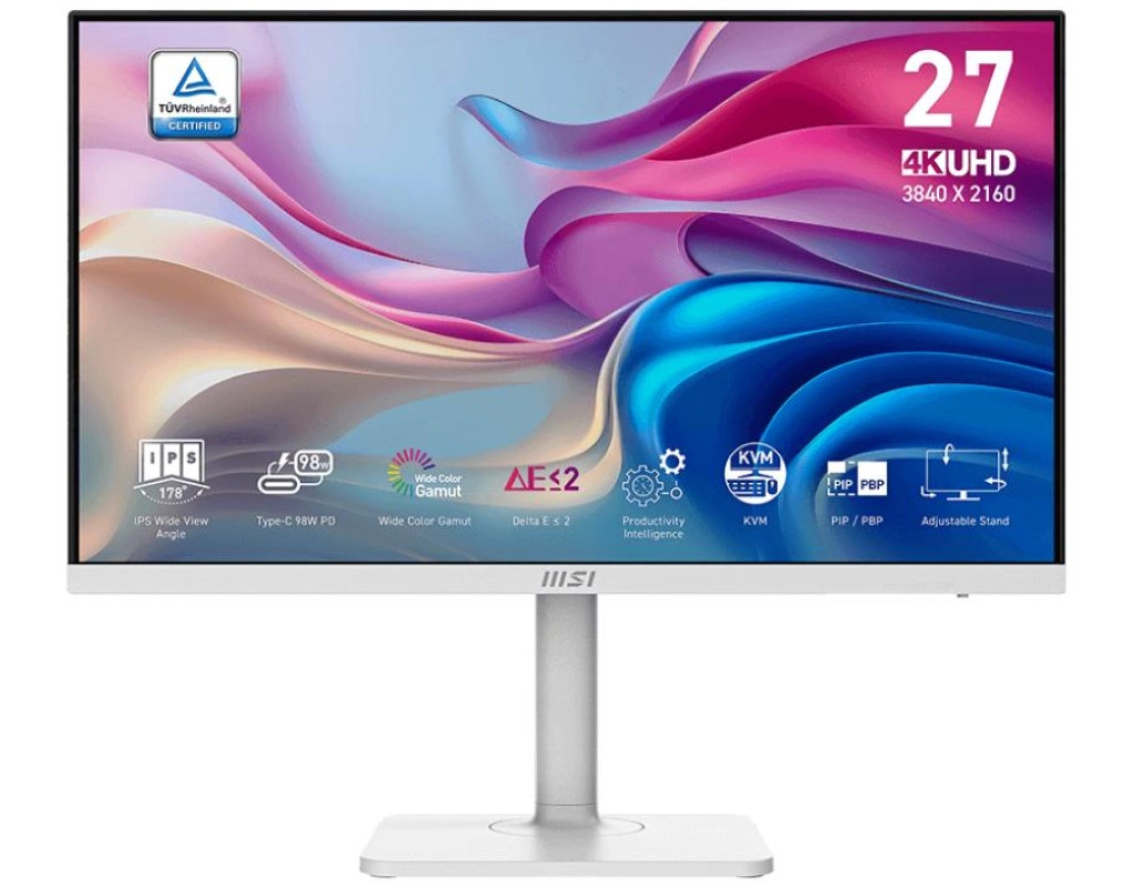 | Монітор MSI MODERN MD272UPHW Елегантність та потужність MSI Modern MD272UPHW вирізняється досконалим поєднанням сучасного дизайну і передових технологій. Його мінімалістичний білий корпус і матове покриття ідеально підходять для будь-якого робочого простору, надаючи йому професійного вигляду. Цей монітор, завдяки своїм витонченим формам, стане стильним акцентом як у бізнес-середовищі, так і в медіастудії чи домашньому офісі. Основи якості зображення 4K UHD Екран з діагоналлю 27 дюймів має роздільну здатність 3840×2160, що дозволяє насолоджуватися надзвичайно чітким та деталізованим зображенням. Чотириразове збільшення кількості пікселів порівняно зі стандартним Full HD не тільки покращує якість візуального контенту, але й допомагає ефективніше працювати з великими документами та багатовіконними застосунками. IPS-матриця забезпечує широкі кути огляду 178°, дозволяючи зберігати однакову якість зображення з будь-якого кута. Ідеальні кольори для професіоналів MSI Modern MD272UPHW пропонує точність відтворення кольорів з заводським калібруванням, де відхилення ΔE є мінімальним, що робить його ідеальним для дизайнерів, фотографів та творців контенту. Високий показник яскравості 400 кд/м² разом із контрастністю 1000:1 гарантують природні та насичені кольори, які не розчарують навіть найвимогливіших користувачів. Максимальна зручність підключення Монітор оснащено різноманітними інтерфейсами, серед яких 2 х HDMI, 1 х DisplayPort, USB Type-C з підтримкою Power Delivery 98 Вт та інші. Це робить його універсальним рішенням для підключення різноманітних пристроїв і зменшує кількість кабелів, зберігаючи порядок на робочому місці. Підвищена продуктивність Функції PIP (картинка-в-картинці) та PBP (картинка-поруч-картинка) дозволяють управляти кількома джерелами одночасно, що значно підвищує вашу продуктивність. За допомогою технології KVM ви можете керувати кількома пристроями з однієї клавіатури та миші, що забезпечує ще більше зручності при роботі з ноутбуком і ПК паралельно. Піклування про ваше здоров'я Дисплей сертифікований TÜV і оснащений технологіями MSI EyesErgo та Anti-Flicker, які знижують навантаження на очі під час тривалого використання. Система MSI Eye-Q Check допомагає відстежувати стан зору й нагадує робити перерви, що особливо важливо для професіоналів, які довго працюють перед екраном. Ергономічний комфорт Регульована підставка дозволяє змінювати нахил, поворот і висоту монітора, даючи змогу налаштувати ідеальне положення для будь-якого робочого сценарію. Завдяки системі кабель-менеджменту, робочий простір залишатиметься охайним. Вбудовані колонки забезпечують якісне звучання без додаткових пристроїв, що робить монітор ще більш універсальним для відеодзвінків, презентацій та роботи з мультимедіа. MSI Modern MD272UPHW — це не лише інструмент, але й натхнення для тих, хто цінує точність, комфорт і стиль. Його бездоганний дизайн та передові технології роблять її беззаперечним вибором для ефективної роботи та творчого процесу. |