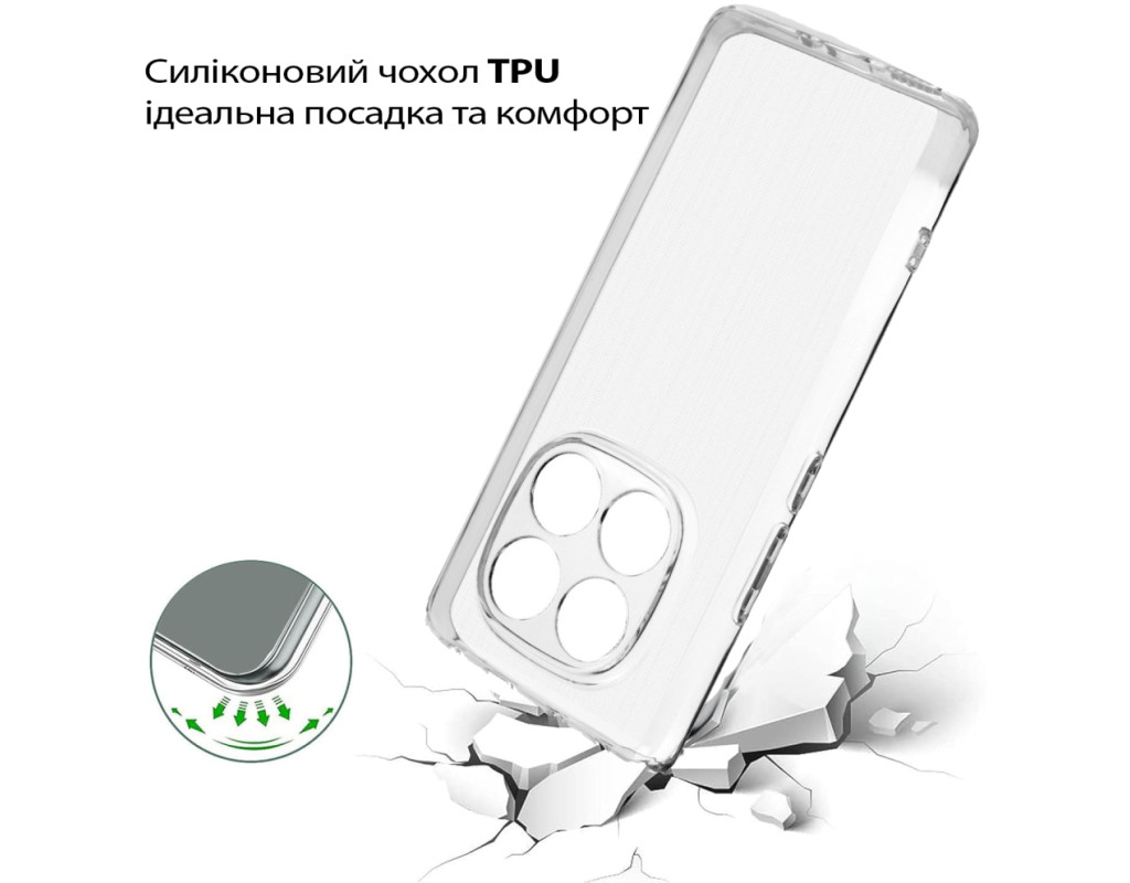 | "Тонкий і еластичний силіконовий чохол забезпечує надійний захист вашого смартфона від механічних пошкоджень, запобігаючи появі подряпин на корпусі. Завдяки високій якості матеріалу, чохол зберігає свою цілісність — він не рветься та не тріскається навіть при тривалому використанні. Чохол легко встановлюється, щільно прилягає до поверхні смартфона, не залишаючи повітряних зазорів, які могли б накопичувати пил, бруд або вологу. Легкий і непомітний, він не додає зайвого об'єму чи ваги вашому пристрою, забезпечуючи надійний захист від ударів, пошкоджень і вологи. Усі вирізи в чохлі точно відповідають роз'ємам і функціональним кнопкам смартфона, що гарантує зручне користування в будь-яких умовах. Силіконове покриття не ковзає, щільно облягає металевий корпус телефону та не перешкоджає доступу до роз'ємів для зарядки, USB-кабелю, гарнітури чи сканера відбитків пальців. Цей силіконовий чохол стане ідеальним вибором для тих, хто шукає стильний і практичний аксесуар для свого смартфона." |