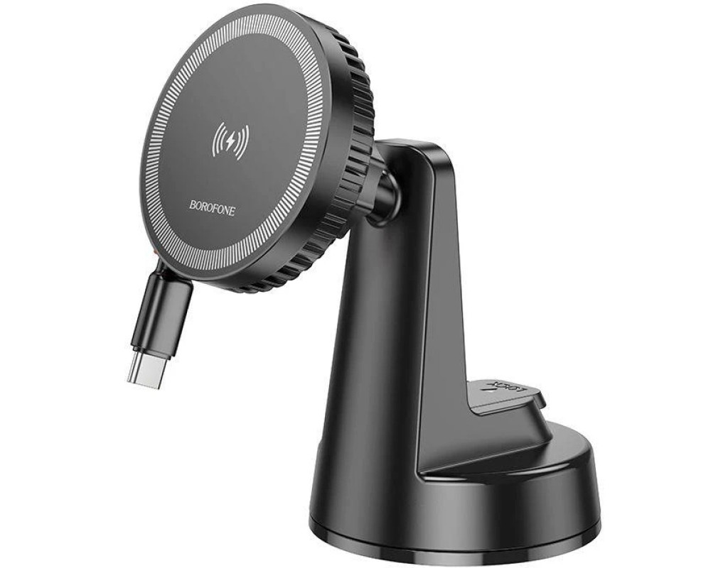 | Автотримач BOROFONE BH208 + Wireless Charging 15W, кріплення на торпеду, клямка 50-90мм, Black, Box |