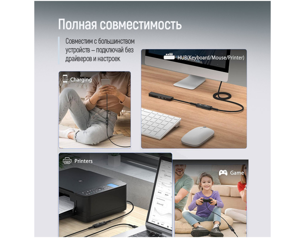 Кабель ColorWay USB 2.0 AM/AF — це надійний подовжувач, який дозволяє збільшити відстань між USB-портом та підключеним пристроєм. Він стане ідеальним рішенням у ситуаціях, коли стандартної довжини USB-кабелю недостатньо для комфортного користування пристроями, такими як клавіатури, миші, принтери, флешки, веб-камери, зовнішні жорсткі диски тощо. Цей кабель забезпечує стабільну передачу даних на швидкості до 480 Мбіт/с відповідно до стандарту USB 2.0, що дозволяє без затримок обмінюватися файлами, передавати відео, аудіо та інші дані. Мідний провідник гарантує високу якість сигналу без втрат, а міцна ПВХ-оболонка захищає кабель від механічних пошкоджень, зламів та зносу, продовжуючи термін його експлуатації. Довжина кабелю 1.8 метра дає змогу зручно розташувати периферійні пристрої навіть на віддаленій від комп'ютера відстані або у важкодоступних місцях. Особливості: