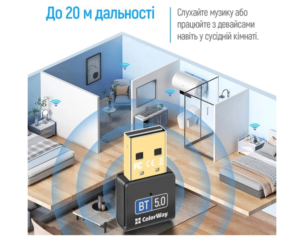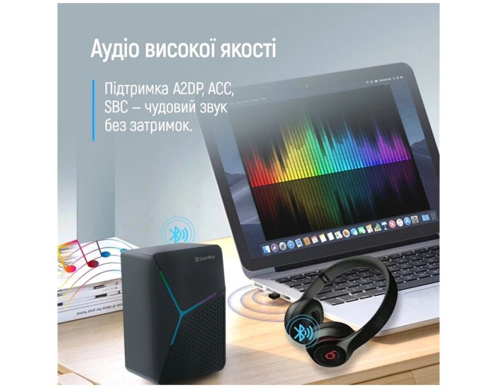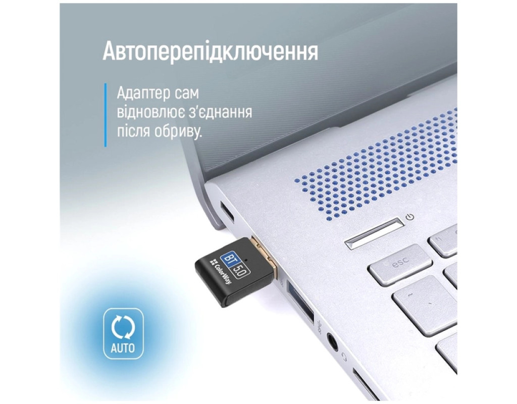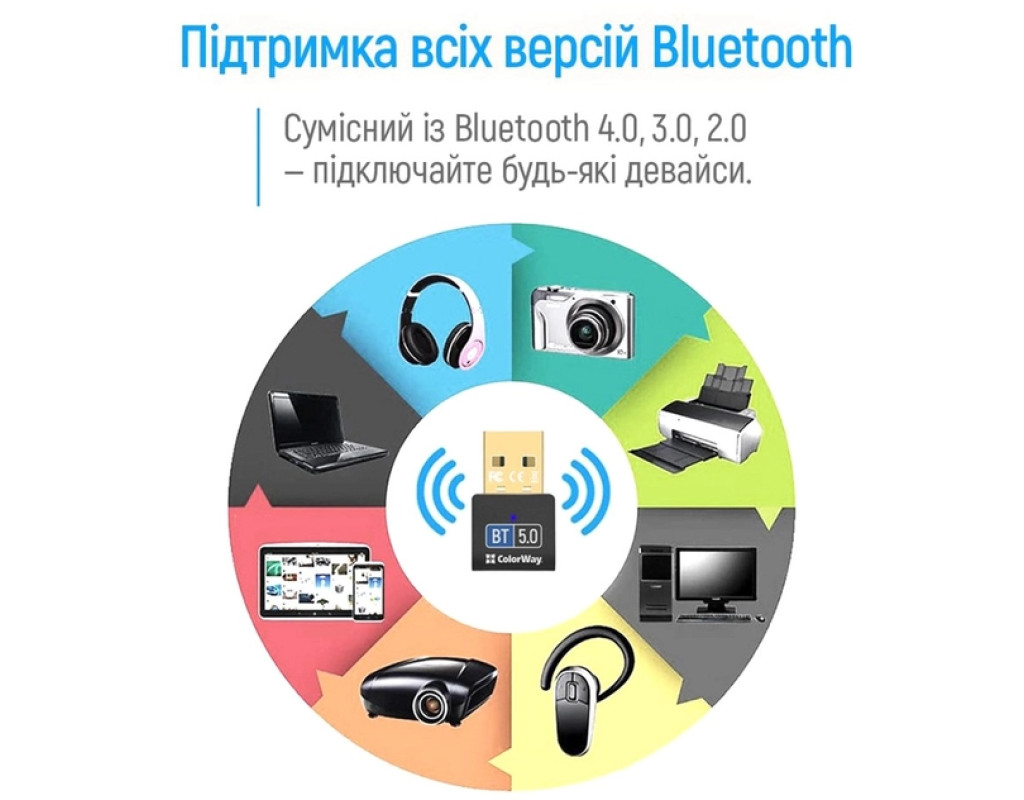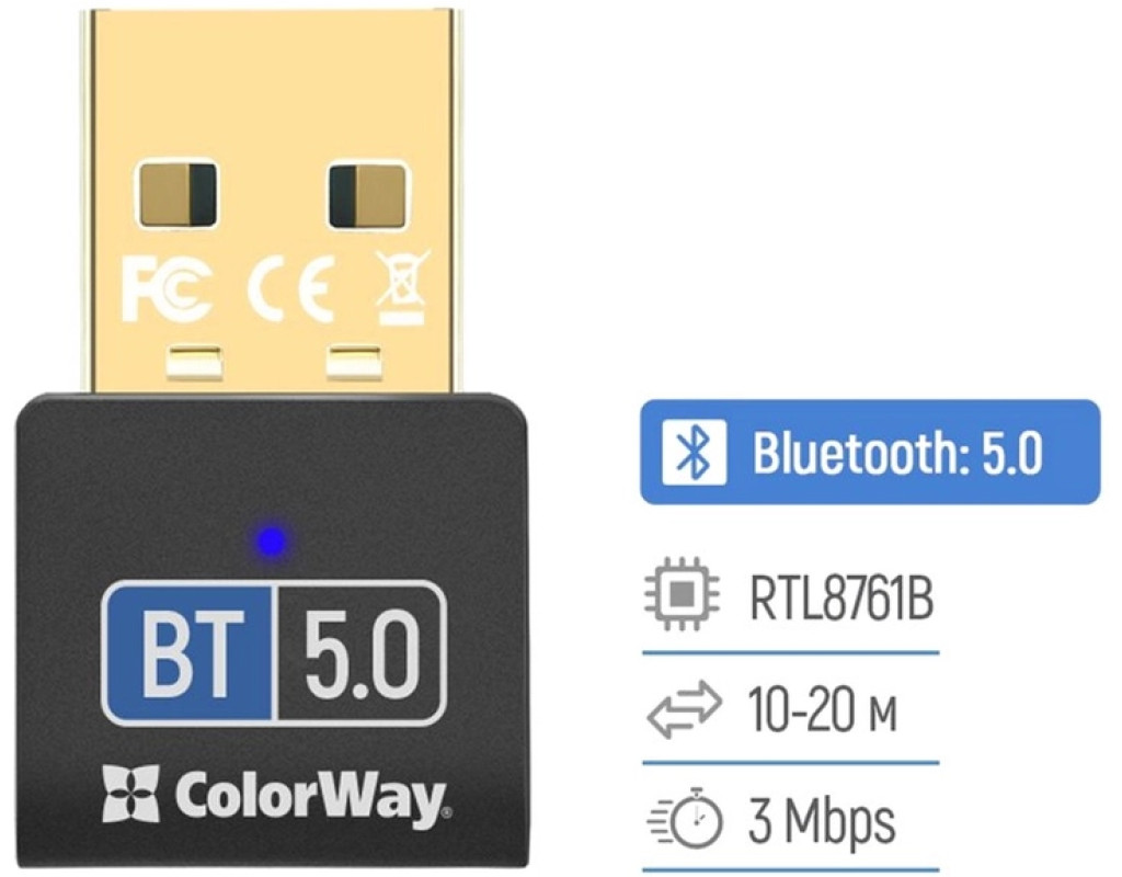 | Адаптер ColorWay Bluetooth 5.0 USB - Перетворіть свій комп'ютер або ноутбук на справжній центр бездротового зв’язку з адаптером ColorWay Bluetooth 5.0. Підключайте бездротові навушники, колонки, миші, клавіатури та інші Bluetooth-пристрої всього за кілька секунд. Особливості: