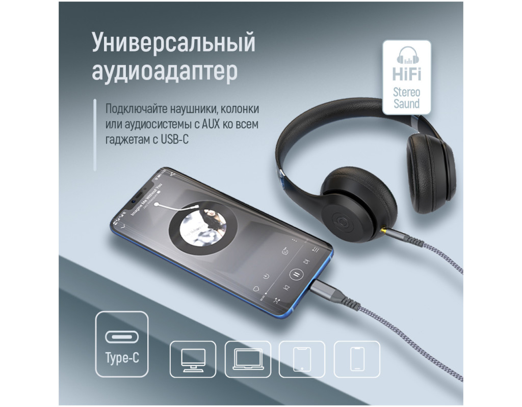 - Простий у використанні: під’єднайте 3.5 мм кабель до аудіопристрою, а USB-C адаптер — до гаджета.