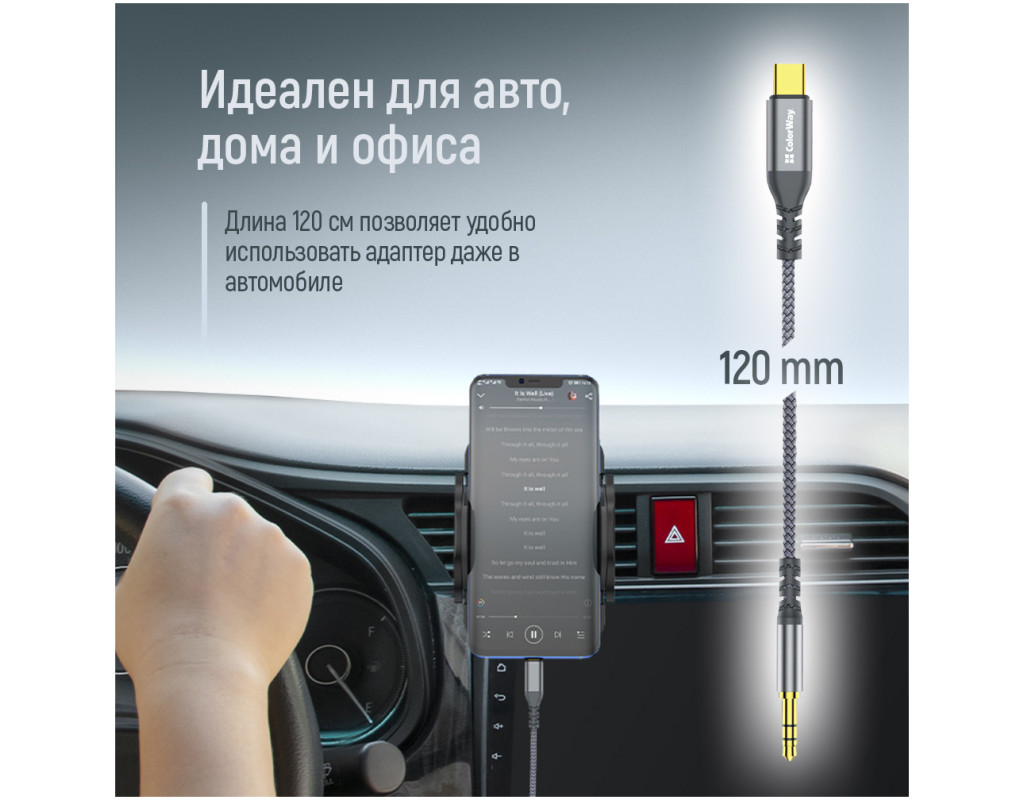 - Довжина кабелю 120 см — зручний для підключення навіть у автомобілі.