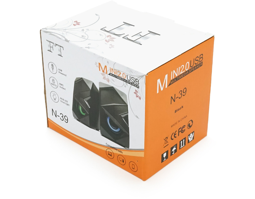 Колонки 2.0 Hotmai FTN-39 USB+3.5mm, 2x3W, 20Hz-18KHz, з регулятором гучності, Black, BOX, Q24