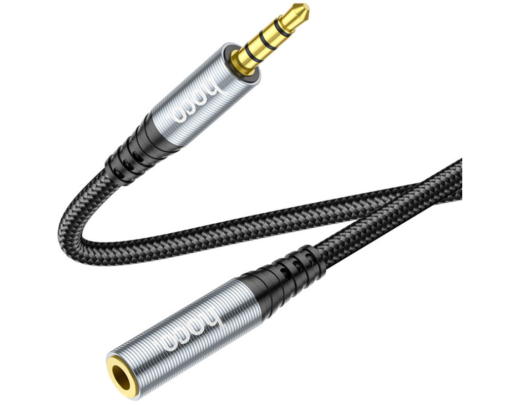 Подовжувач HOCO UPA20 DC3.5 тато-мама 1.0м, GOLD Stereo Jack, (круглий) Black cable, Box