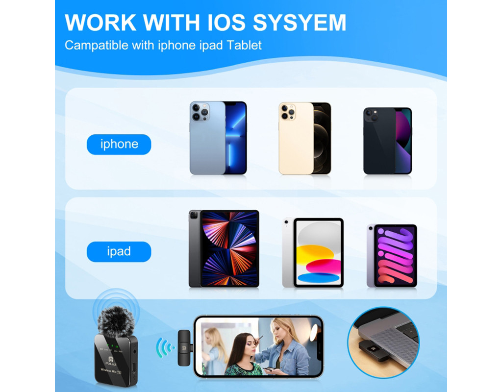 Бездротовий мікрофон 2.4G: бездротове з'єднання, може забезпечити високу точність запису до 48K.