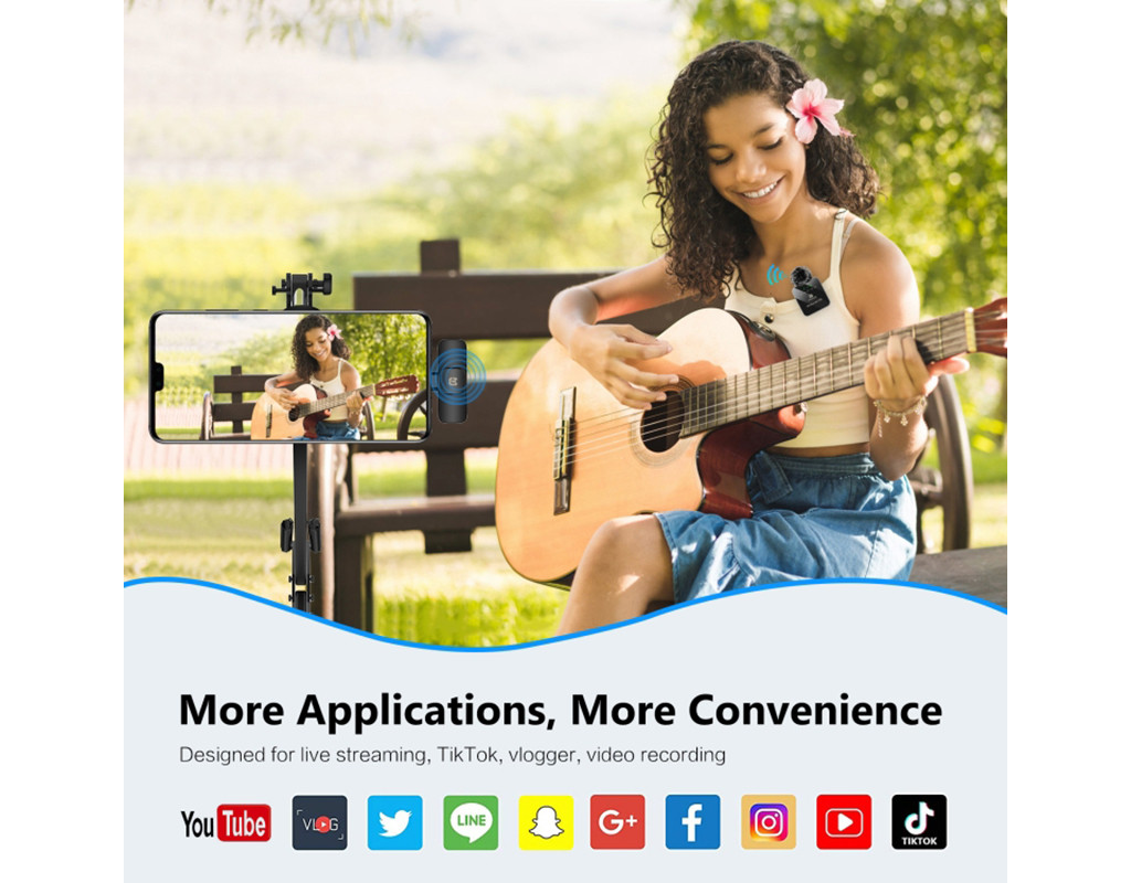 Бездротовий мікрофон 2.4G: бездротове з'єднання, може забезпечити високу точність запису до 48K.