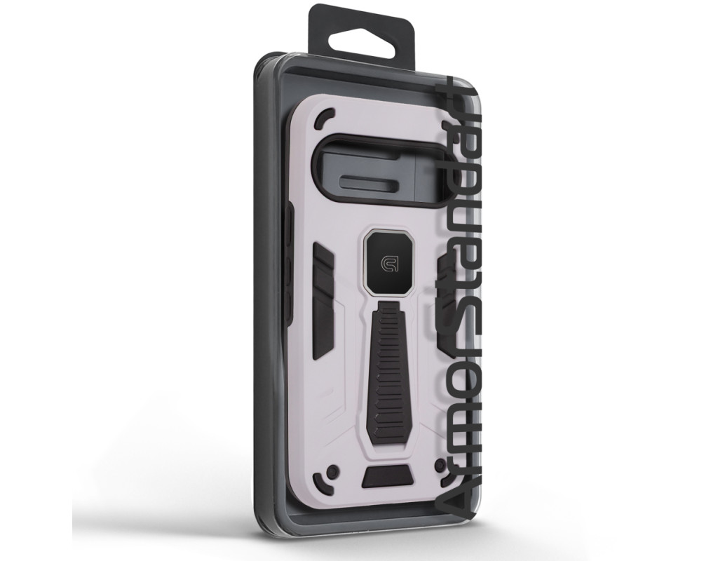 ArmorStandart Proover — це захисний чохол, створений для тих, хто шукає надійність, практичність і продумані деталі. Він забезпечує повноцінний захист смартфона, зберігаючи його функціональність та первісний стан у щоденному використанні. Конструкція поєднує два матеріали: м’який термопластичний поліуретан (TPU) ефективно поглинає удари та запобігає подряпинам, а зовнішній шар із полікарбонату (PC) захищає від механічних пошкоджень і потертостей. Посилені кути мінімізують ризик ушкоджень під час падінь, а блок камери повністю закритий, що забезпечує додатковий захист об’єктивів від подряпин і ударів. На спинці чохла вбудована металева пластина, яка дозволяє використовувати його з магнітними авто-тримачами, забезпечуючи комфорт і безпеку під час керування автомобілем. Чохол оснащений зручною відкидною підставкою, яка дозволяє встановити смартфон горизонтальному або вертикальному положенні для комфортного перегляду відео, відеодзвінків або роботи з контентом. Матове покриття приємне на дотик, стійке до відбитків пальців і подряпин. Особливості: