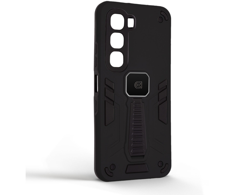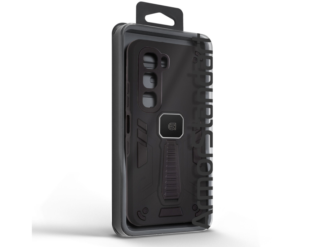 ArmorStandart Proover — це захисний чохол, створений для тих, хто шукає надійність, практичність і продумані деталі. Він забезпечує повноцінний захист смартфона, зберігаючи його функціональність та первісний стан у щоденному використанні. Конструкція поєднує два матеріали: м’який термопластичний поліуретан (TPU) ефективно поглинає удари та запобігає подряпинам, а зовнішній шар із полікарбонату (PC) захищає від механічних пошкоджень і потертостей. Посилені кути мінімізують ризик ушкоджень під час падінь, а блок камери повністю закритий, що забезпечує додатковий захист об’єктивів від подряпин і ударів. На спинці чохла вбудована металева пластина, яка дозволяє використовувати його з магнітними авто-тримачами, забезпечуючи комфорт і безпеку під час керування автомобілем. Чохол оснащений зручною відкидною підставкою, яка дозволяє встановити смартфон горизонтальному або вертикальному положенні для комфортного перегляду відео, відеодзвінків або роботи з контентом. Матове покриття приємне на дотик, стійке до відбитків пальців і подряпин. Особливості: