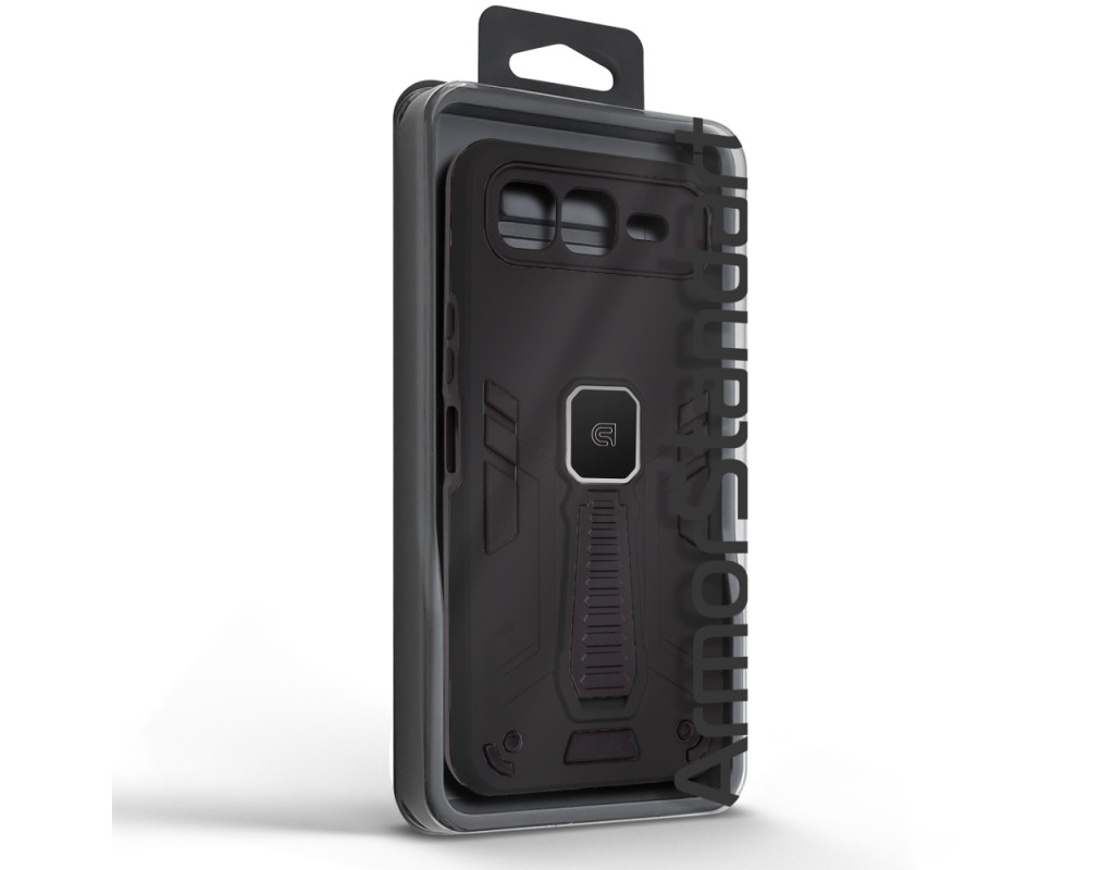 ArmorStandart Proover — це захисний чохол, створений для тих, хто шукає надійність, практичність і продумані деталі. Він забезпечує повноцінний захист смартфона, зберігаючи його функціональність та первісний стан у щоденному використанні. Конструкція поєднує два матеріали: м’який термопластичний поліуретан (TPU) ефективно поглинає удари та запобігає подряпинам, а зовнішній шар із полікарбонату (PC) захищає від механічних пошкоджень і потертостей. Посилені кути мінімізують ризик ушкоджень під час падінь, а блок камери повністю закритий, що забезпечує додатковий захист об’єктивів від подряпин і ударів. На спинці чохла вбудована металева пластина, яка дозволяє використовувати його з магнітними авто-тримачами, забезпечуючи комфорт і безпеку під час керування автомобілем. Чохол оснащений зручною відкидною підставкою, яка дозволяє встановити смартфон горизонтальному або вертикальному положенні для комфортного перегляду відео, відеодзвінків або роботи з контентом. Матове покриття приємне на дотик, стійке до відбитків пальців і подряпин. Особливості: