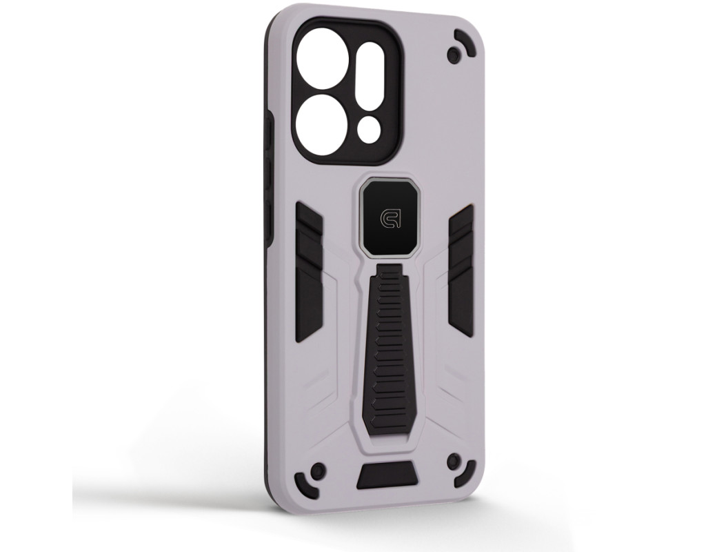 ArmorStandart Proover — це захисний чохол, створений для тих, хто шукає надійність, практичність і продумані деталі. Він забезпечує повноцінний захист смартфона, зберігаючи його функціональність та первісний стан у щоденному використанні. Конструкція поєднує два матеріали: м’який термопластичний поліуретан (TPU) ефективно поглинає удари та запобігає подряпинам, а зовнішній шар із полікарбонату (PC) захищає від механічних пошкоджень і потертостей. Посилені кути мінімізують ризик ушкоджень під час падінь, а блок камери повністю закритий, що забезпечує додатковий захист об’єктивів від подряпин і ударів. На спинці чохла вбудована металева пластина, яка дозволяє використовувати його з магнітними авто-тримачами, забезпечуючи комфорт і безпеку під час керування автомобілем. Чохол оснащений зручною відкидною підставкою, яка дозволяє встановити смартфон горизонтальному або вертикальному положенні для комфортного перегляду відео, відеодзвінків або роботи з контентом. Матове покриття приємне на дотик, стійке до відбитків пальців і подряпин. Особливості:
