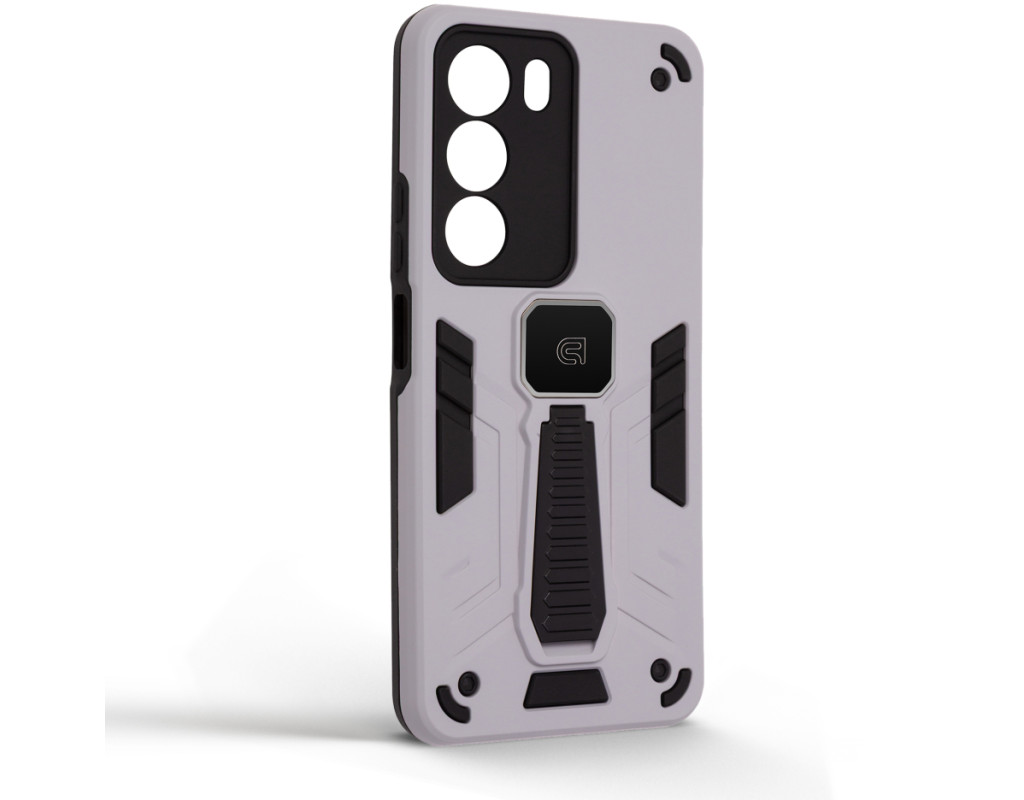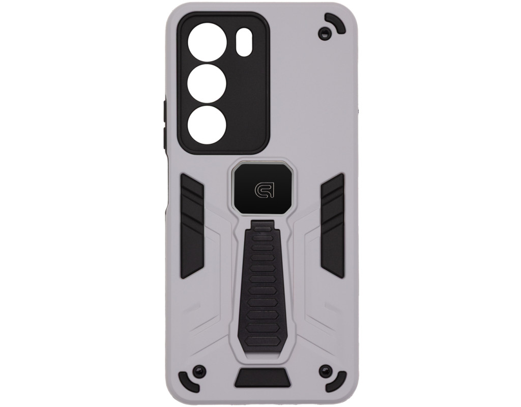 ArmorStandart Proover — це захисний чохол, створений для тих, хто шукає надійність, практичність і продумані деталі. Він забезпечує повноцінний захист смартфона, зберігаючи його функціональність та первісний стан у щоденному використанні. Конструкція поєднує два матеріали: м’який термопластичний поліуретан (TPU) ефективно поглинає удари та запобігає подряпинам, а зовнішній шар із полікарбонату (PC) захищає від механічних пошкоджень і потертостей. Посилені кути мінімізують ризик ушкоджень під час падінь, а блок камери повністю закритий, що забезпечує додатковий захист об’єктивів від подряпин і ударів. На спинці чохла вбудована металева пластина, яка дозволяє використовувати його з магнітними авто-тримачами, забезпечуючи комфорт і безпеку під час керування автомобілем. Чохол оснащений зручною відкидною підставкою, яка дозволяє встановити смартфон горизонтальному або вертикальному положенні для комфортного перегляду відео, відеодзвінків або роботи з контентом. Матове покриття приємне на дотик, стійке до відбитків пальців і подряпин. Особливості: