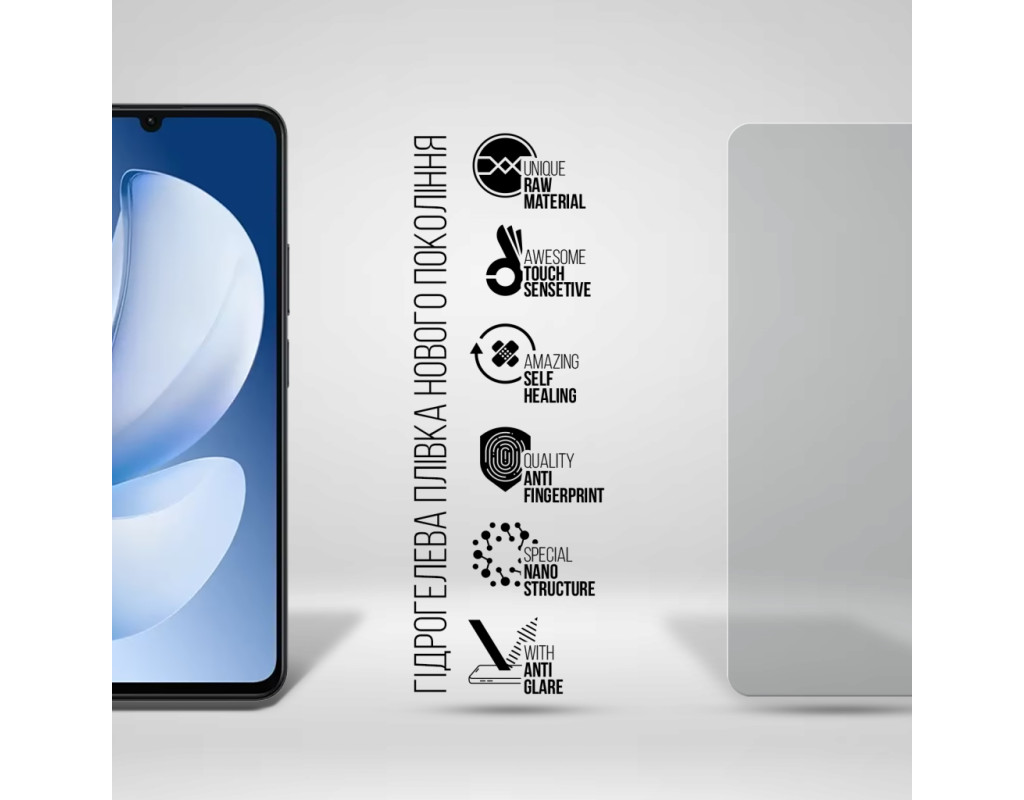 Призначення - для телефону, Вид покриття - матове, гідрогелева, Сумісність з моделями - Realme Note 70, Підходить для телефонів з діагоналлю - 6.74", Особливості - матова, Кількість в упаковці - 1 шт