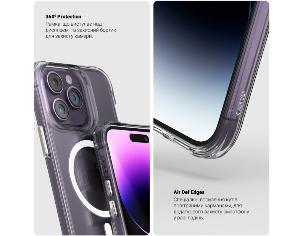 Чохол ArmorStandart Clear MagCase для Apple iPhone - це стильний і надійний захист для вашого гаджета. Він виготовлений з високоякісних матеріалів, що забезпечують тривалу службу і надійний захист вашого смартфона. Витончений дизайн Високоякісні матеріали Додаткове покриття, що застосовується на чохлі, дозволяє попередити пожовтіння матеріалів. Воно допомагає захистити чохол від впливу ультрафіолетового випромінювання, забезпечуючи тим самим стійкість до поблідніння і збереження оригінального вигляду протягом тривалого часу. Інноваційна гібридна конструкція Зміцнені амортизаційні кути додають додаткового захисту вашому смартфону, зменшуючи ризик ушкоджень при падінні з невеликої висоти. Додатковий захист дисплея та камери Завдяки виступаючим бортикам навколо дисплею та задньої камери, чохол надає додаткового захисту вашому гаджету від непередбачуваних ситуацій. Ці бортики створюють додатковий бар'єр, що допомагає захистити екран і камеру від подряпин, ударів і зношування. Всі необхідні отвори та кнопки Сумісність з Magsafe Особливості: