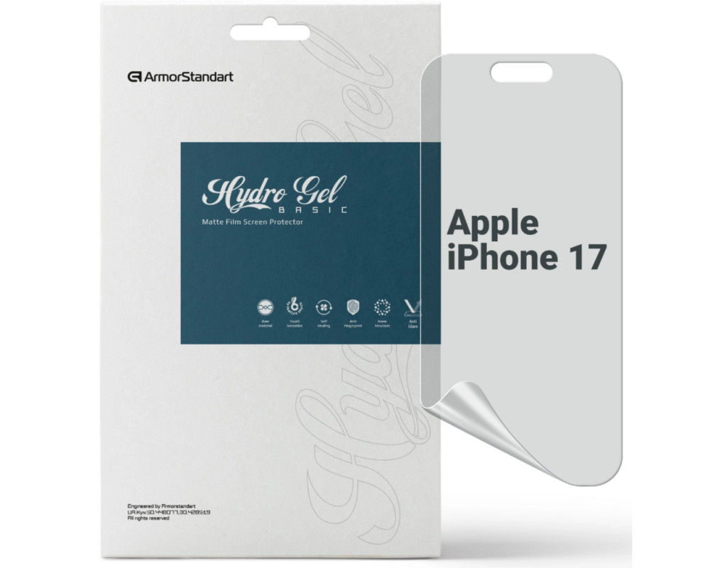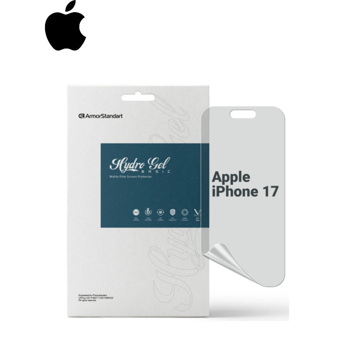 Призначення - для телефону, Вид покриття - матове, гідрогелева, Сумісність з моделями - Apple iPhone 17, Підходить для телефонів з діагоналлю - 6.3", Особливості - матова, Кількість в упаковці - 1 шт