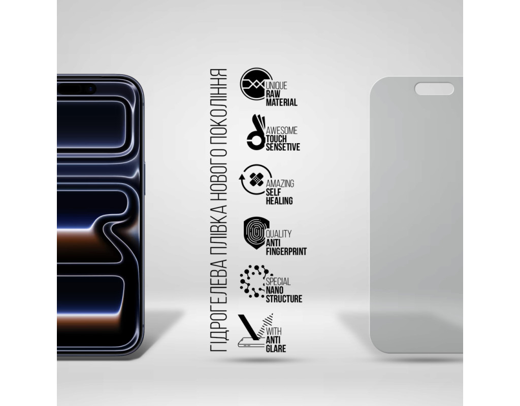 Призначення - для телефону, Вид покриття - матове, гідрогелева, Сумісність з моделями - Apple iPhone 17 Pro, Підходить для телефонів з діагоналлю - 6.3", Особливості - матова, Кількість в упаковці - 1 шт